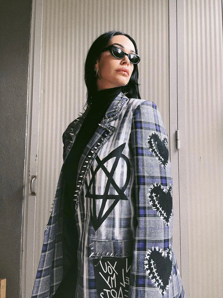 The first part of the process consists in selecting unique pieces from London vintage and charity shops, modifying the models and customising them using different materials: paint, pins and chains are a few of the ones used by the brand, enhanced by precious inserts and “X” embroidery.